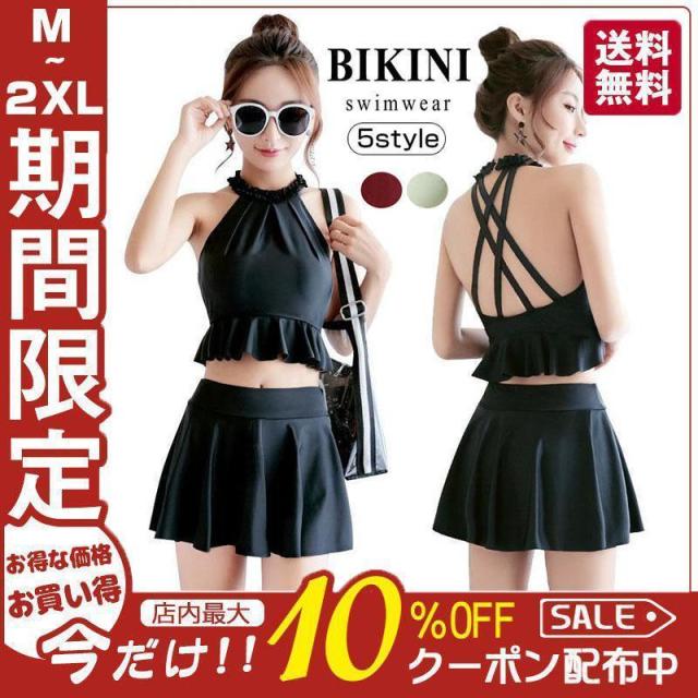水着 レディース ビキニ セパレート ハイネック ハイウエストワンピース 体型カバー スカート おしゃれ 2点セット オトナ女子 ママ水着露出控えめ