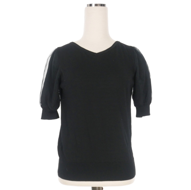 【中古】アールユー RU Vネック チュール ニットカットソー パフスリーブ 半袖 M ブラック 黒 BK81DS621 レディース