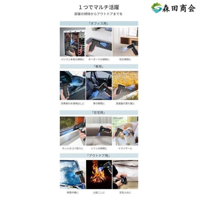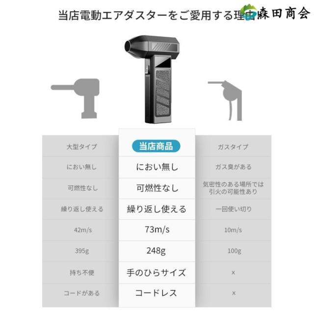 【8000mAh・歴代最強風速73m/s】エアダスター 電動 190000RPM 風量4段階 超強力 充電式 ライト付き ノズル付 空気入れ ガス不用 (PC掃除/キーボード/車内/洗車)
