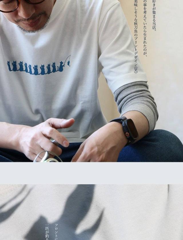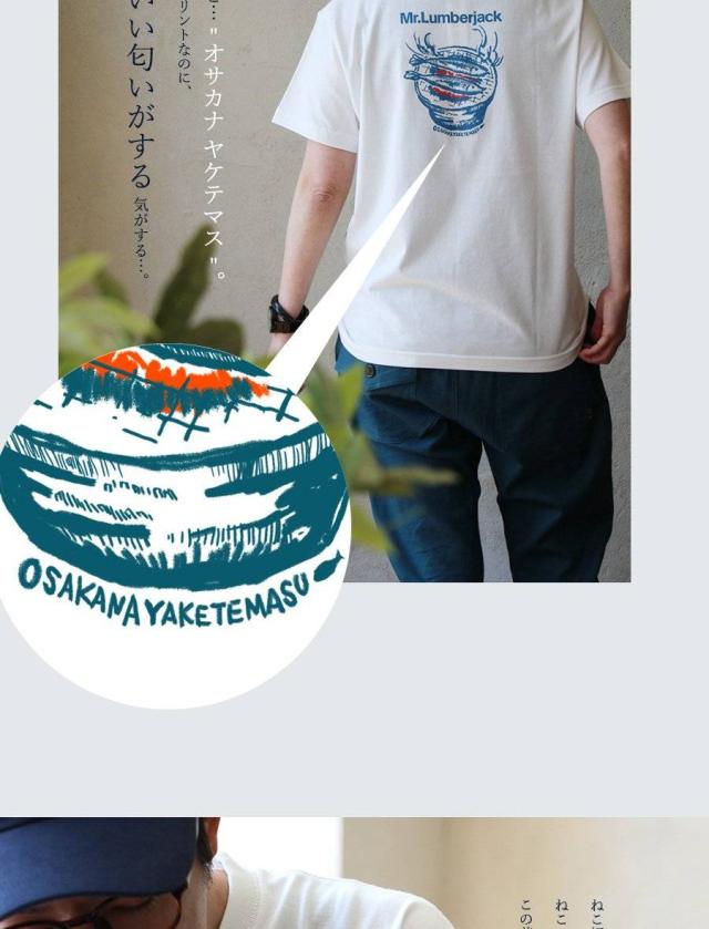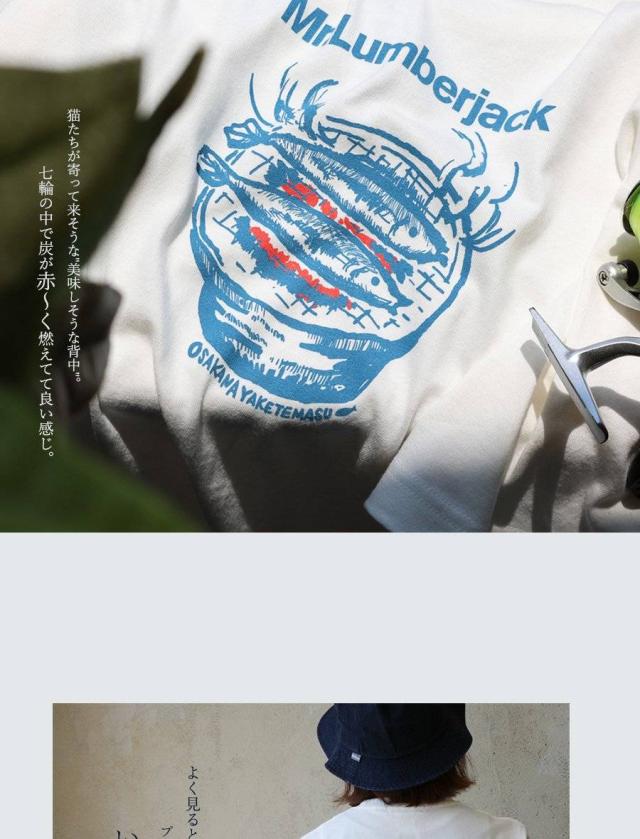 Tシャツ 半袖 メンズ レディース おしゃれ アウトドア 焼き魚 ねこ ネコ 猫 プリント 丈夫 コットン 綿100 夏 ユニーク ティーシャツ カジュアル パティ Mr.Lumberjack ミスターランバージャック