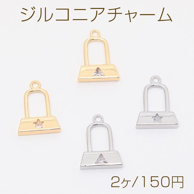 ジルコニアチャーム 銅製 ロック 錠 鍵 メタルチャーム 約11×15mm(2ヶ)