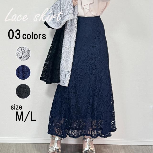 総レーススカート ロング丈 ゆったり オフィスカジュアル デート パーティ 二次会 無地 着回し 春夏秋冬 レディース 送料無料 SLENDER スレンダ x102