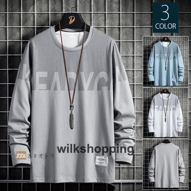 ロンT Tシャツ メンズ 長袖tシャツ ロングTシャツ 秋服 トップス カットソー トップス配色切り替え クルーネック