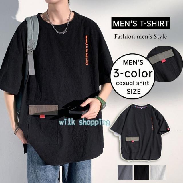 Tシャツ メンズ トップス クルーネック 五分袖 ポケット付き 涼しい 夏Tシャツ カジュアルTシャツ 薄手 通学 旅行 シンプル カジュアル おしゃれ 洒落 男性 夏物 新作 誕生日 プレゼント