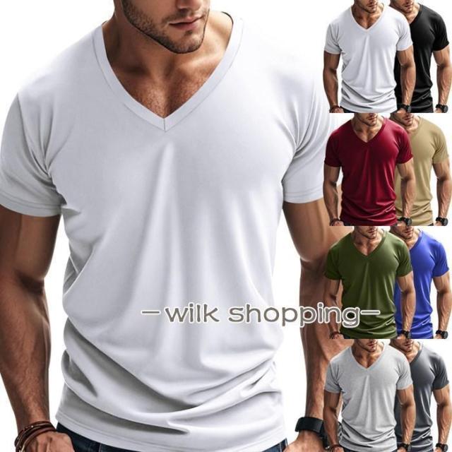 Tシャツ メンズ Vネック カットソー おしゃれ スリム 半袖 無地 ドライ アメカジ 半袖Tシャツ 吸汗速乾 インナー シンプル スポーツウェア