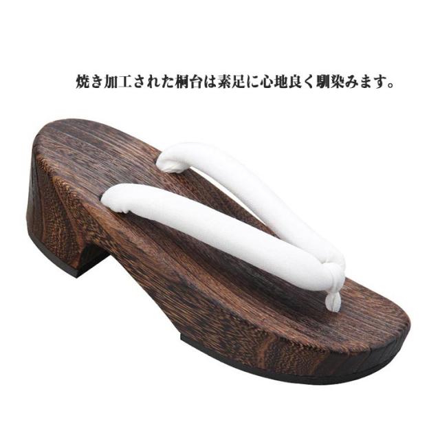 | ・どんなデザインにも合わせやすい無地で使い勝手抜群! ・焼き加工された桐台は素足に心地良く馴染みます。 ・高低差の感じにくい5.5cmヒールで、歩きやすさもスタイルアップも叶います! ・浴衣や着物だけでなく普段のコーディネートにも合う下駄サンダル! | |