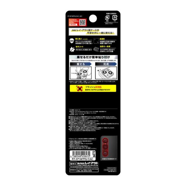 抜群の透明度。透過率約92%なので、高画質な写真や動画が撮影できる。汚れをはじくコーティングで清潔な状態を保つ。通常のPETフィルムの約3倍以上の硬度で傷付きにくい。誰でも簡単に装着できるので、位置ズレの心配がない。 |