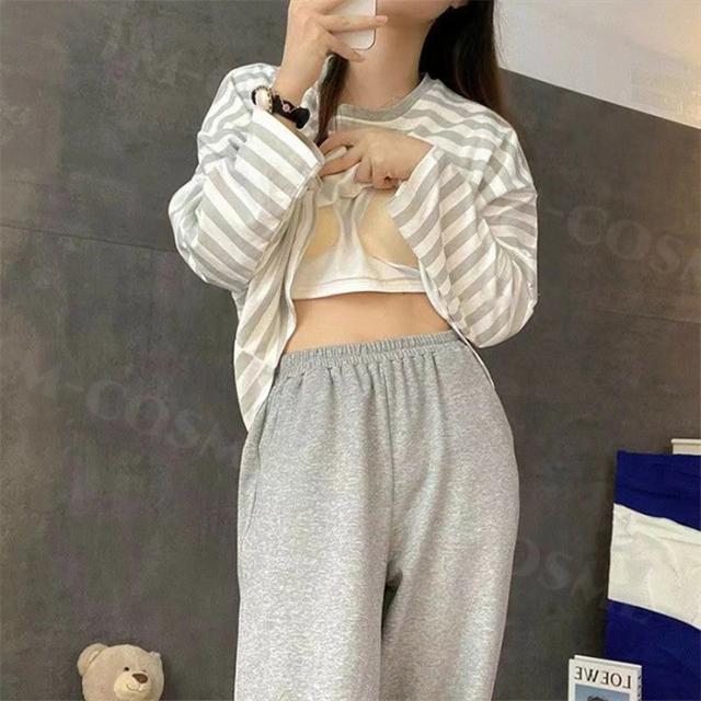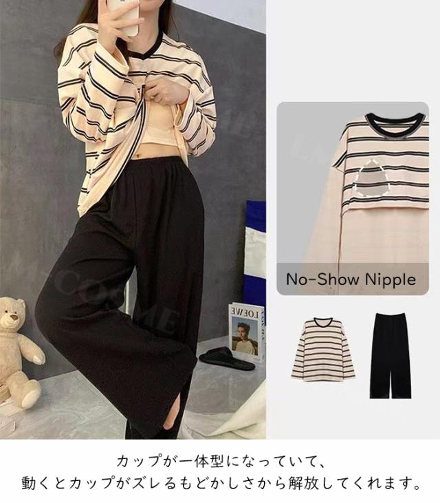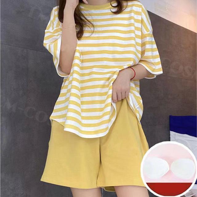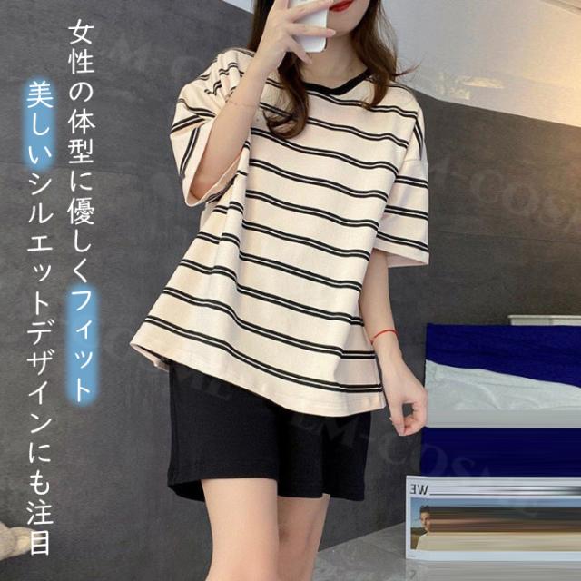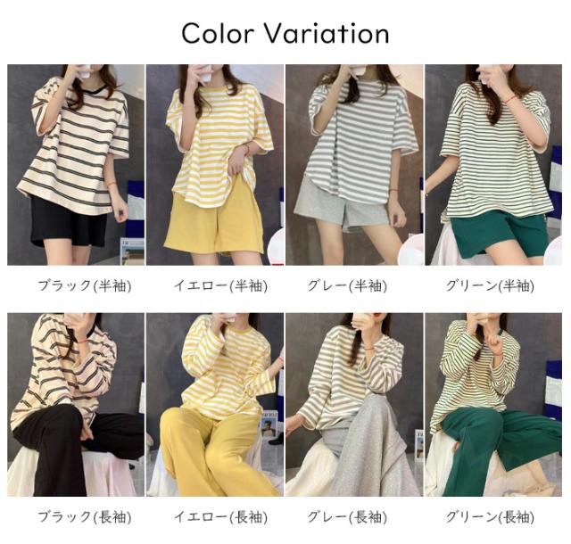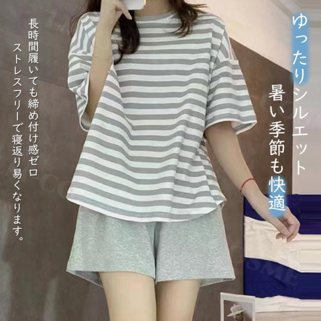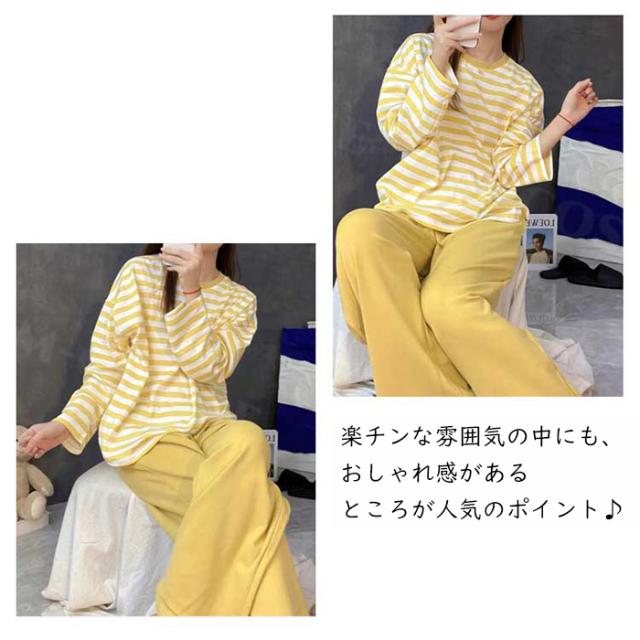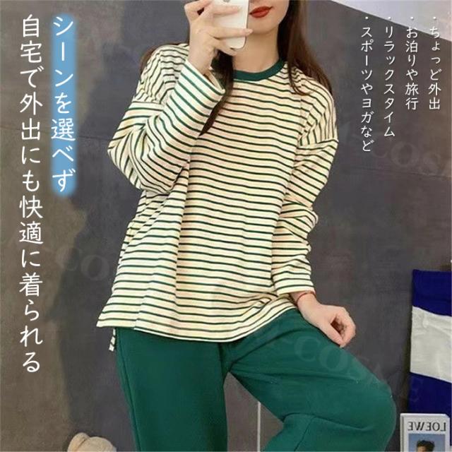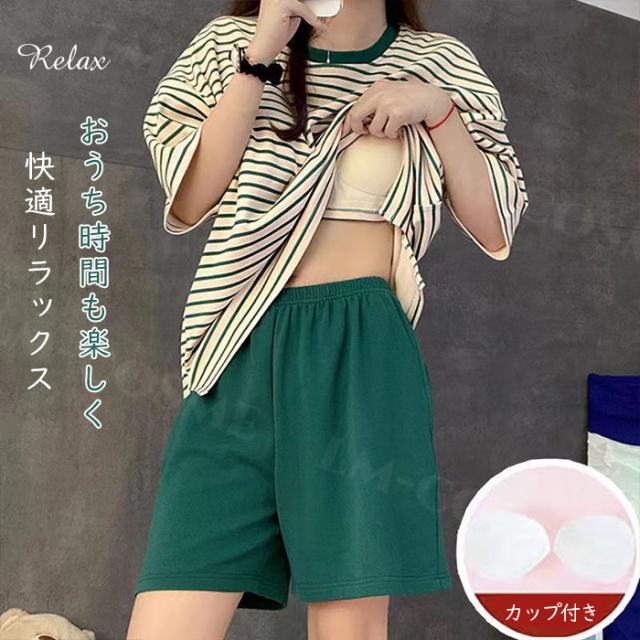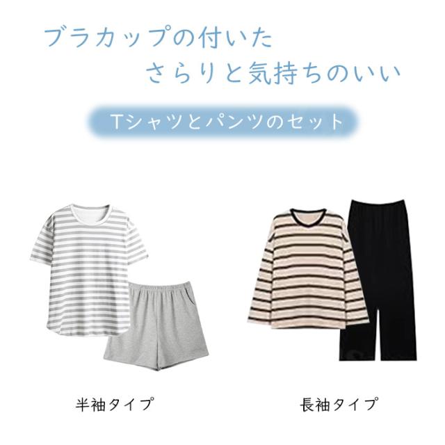 ルームウェア 上下セット カップ付き ナイトウェア パジャマ 寝巻き セットアップ レディース 半袖 長袖 選べる2タイプ ボーダー柄 Tシャツ ショートパンツ ロングパンツ 春 夏 秋 寝間着 通気性 リラックス 着心地 部屋着 入院 産後 入学式 入園式