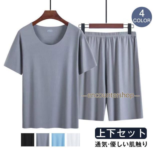 冷感パジャマ 夏用 シンプル 定番 部屋着 寝巻き 家着 涼しい 肌に優しい 快眠 紳士 吸汗 通気 韓国 ナイトウェア ゆったり