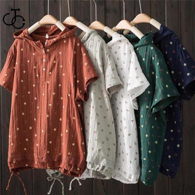 パーカー Tシャツ レディース ブラウス 春 夏 秋 リネン フード付き ガーゼ 半袖 シャツブラウス ガーゼ tシャツ 綿麻 トップス 着心地 ゆったり 体型カバー