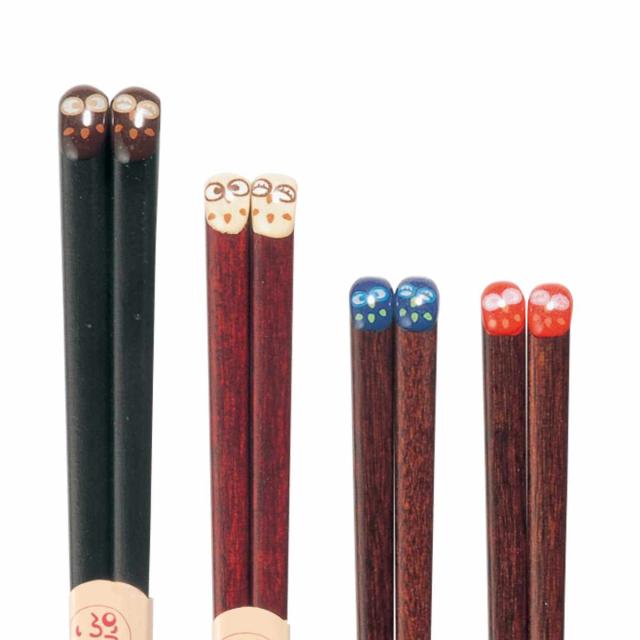 上部のふくろうがぷっくりと浮き上がったカワイイデザインのお箸です。箸先には滑り止めを施しているので、お子様でも使いやすくなっています。4種類からお選びいただけるので、ご家族分におススメです。