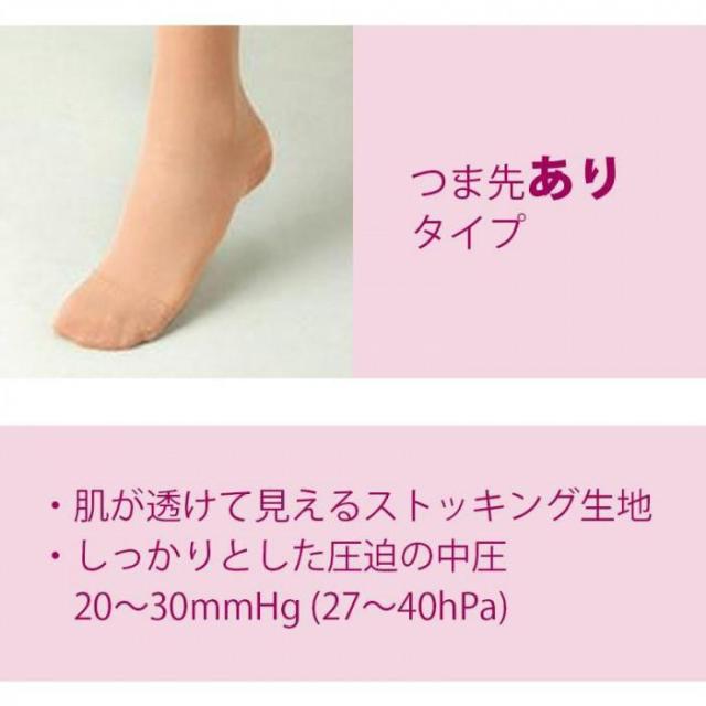 | 仕様 | ズレ落ち防止シリコン付きレース加工 爪先タイプ:爪先あり 圧迫:中圧(20〜30mmHg/27〜40hPa) |