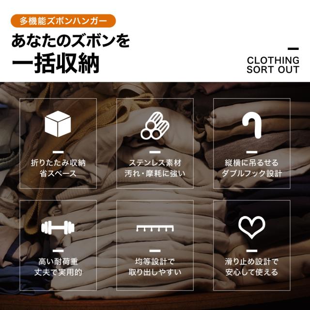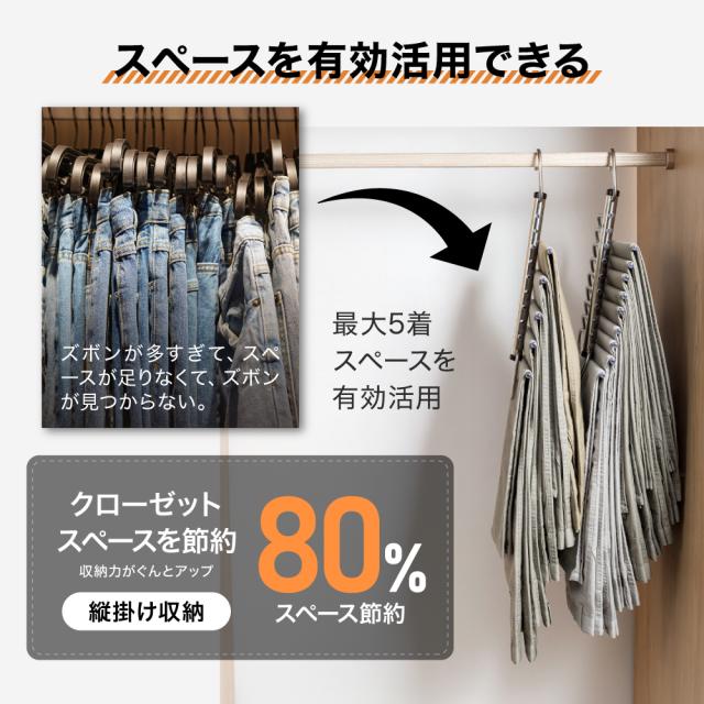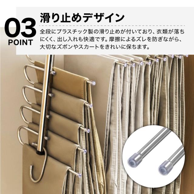 ズボンハンガー 5連 ステンレス すべらない ステンレスハンガー スラックスハンガー ズボン ハンガー パンツ ハンガー 収納 省スペース 折りたたみ ズボンハンガー 収納 タオル 掛け 多機能 滑り止め ジーンズハンガー 軽量
