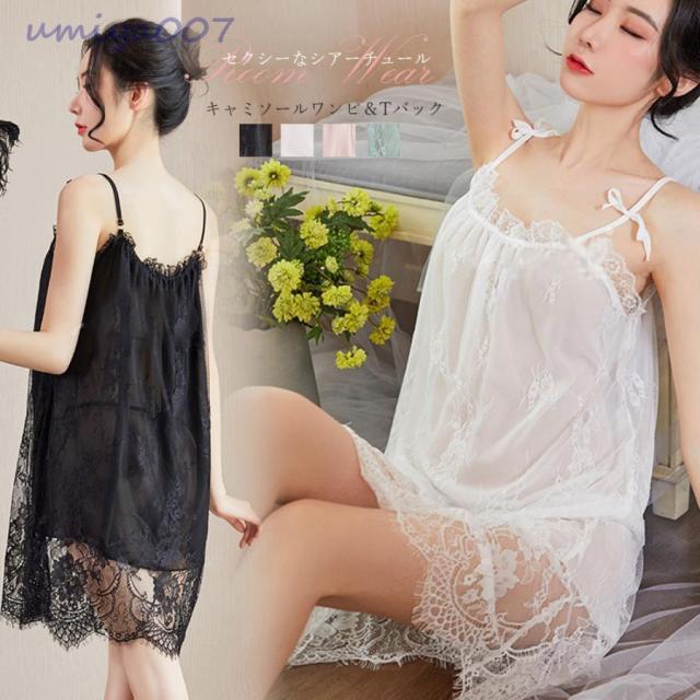 コスプレ セクシー シアーチュール Tバック キャミソールワンピース 2点セット レース レディース 体型カバー