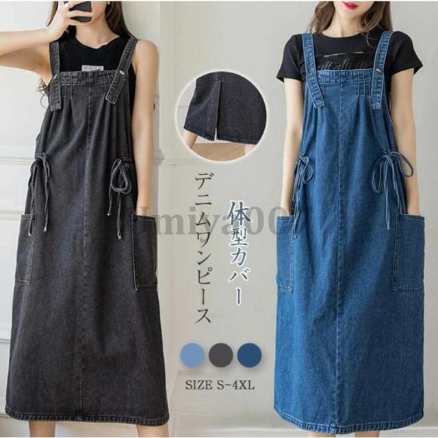 サロペットレディース ワンピース レディース ジャンパースカート ロングワンピース デニムワンピース デニム 春 夏 秋 キャミワンピース ロング丈