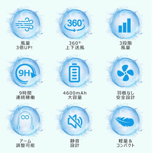 首掛け扇風機 ネッククーラー 羽なし 軽量 静音 マイナスイオン 扇風機 首かけ 連続送風 首掛け 扇風機 ネックファン 携帯 3段階風量 USB充電 4000mAh ハンディ 持ち運び 熱中症対策 コンパクト 冷却 省エネ 猛暑対策 空気浄化 立体冷風