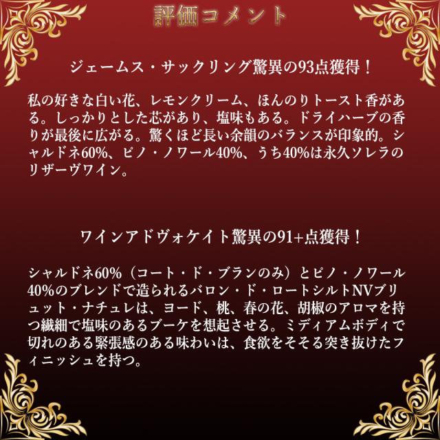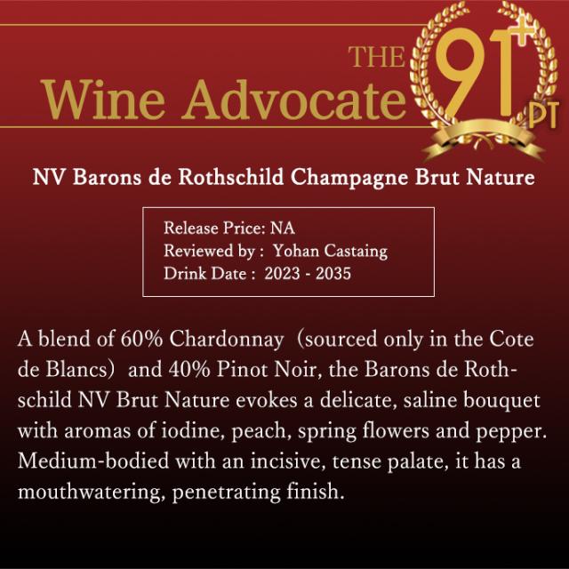 バロン ド ロスチャイルド シャンパーニュ ブリュット ナチュール AOCシャンパーニュ 正規品 WA驚異の91+点&ジェームス サックリング93点