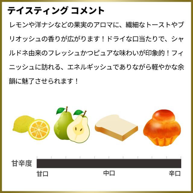 ![]() ■ぶどう品種:シャルドネ60%&ピノ・ノワール40% ■発酵・熟成:4年以上の瓶内熟成 ■ドサージュ:0g/L 外観は輝きのある黄金色の色調!レモンや洋ナシなどの果実のアロマに、繊細なトーストやブリオッシュの香りが広がります!ドライな口当たりで、シャルドネ由来のフレッシュかつピュアな味わいが印象的!フィニッシュに訪れる、エネルギッシュでありながら軽やかな余韻に魅了させられます! バロン・ド・ロスチャイルド渾身の究極ノン・ドゼ・シャンパーニュ!至高のシャンパーニュが正規品で極少量入荷! ![]() |