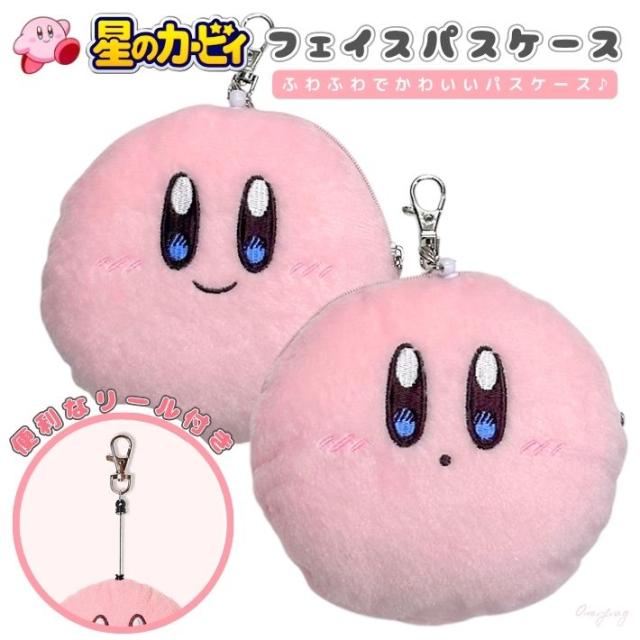 星のカービィ パスケース リール付き ICカードケース 定期入れ フェイス型 ぬいぐるみ マスコット ポーチ 小物入れ バッグチャーム 通学 通勤 かわいい ギフト プレゼント キャラクター グッズ 任天堂 レディース メンズ ピンク 人気