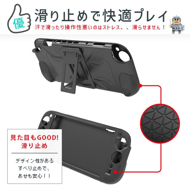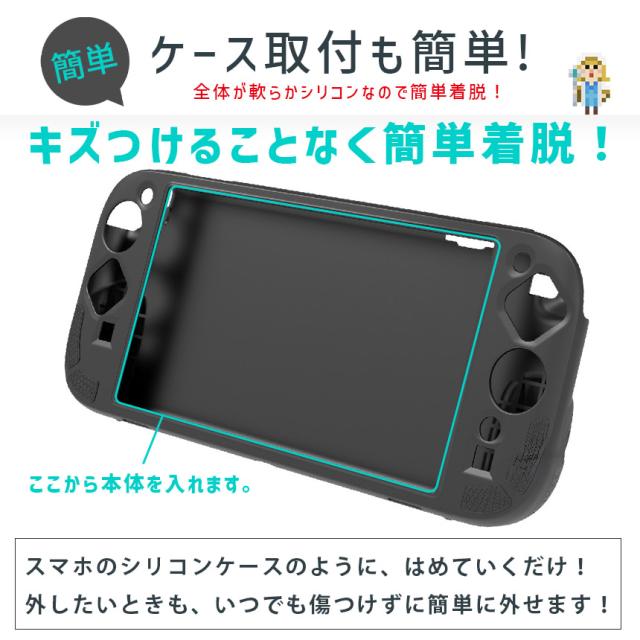 柔らかく滑らかな、耐久性もある高品質シリコン素材を使ったケースなので、しっかり保護してくれ、変形もしにくく、汚れても洗える!世界でも幅広くつかわれています。実機をもとに設計も細かくされているため、簡単着脱な上、ピタッとハマります。グリップも滑り止めもついていて、快適にゲームプレイできます。屋内保管はもちろん、旅行や友達の家、持ち運びにも傷の心配なく大活躍!