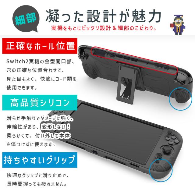 「Switch2 シリコンケース」 滑らか素材 保護しながら操作しやすいグリップタイプに変身! お洒落デザイン スイッチ2デザインを損なわない つけたまま充電 男女問わず 洗える 肌に優しい