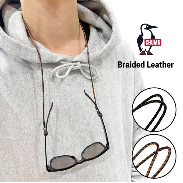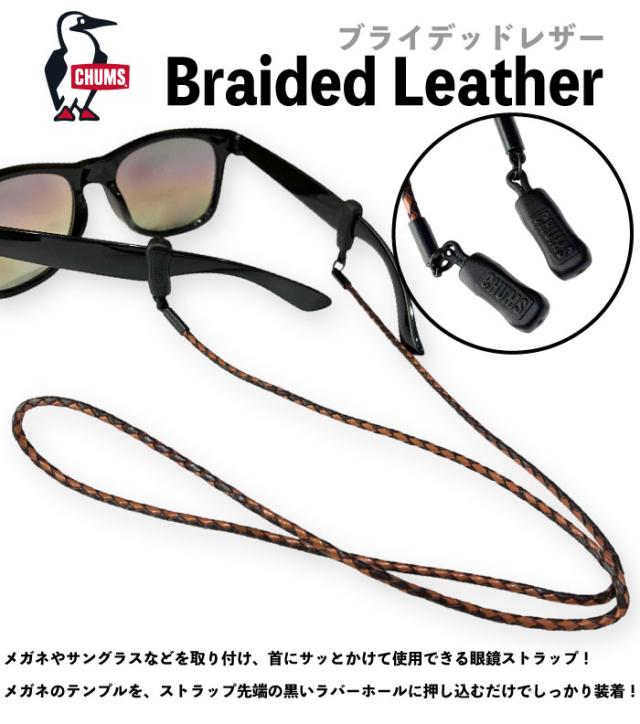 CHUMS チャムス ブライデッドレザー メガネストラップ 眼鏡ストラップ グラスストラップ グラスコード サングラス 老眼鏡 落下防止 首掛け 軽量 メンズ レディース CH61-1191 メール便対応