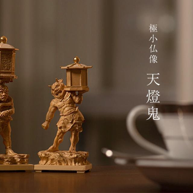 極小仏 天燈鬼(木彫り 木彫 鬼 ミニ仏像 木彫り仏像 置物 仏像 フィギュア ミニ ミニチュア オブジェ お守り 玄関 仏教)