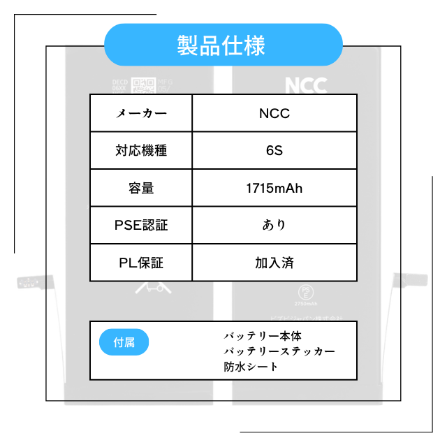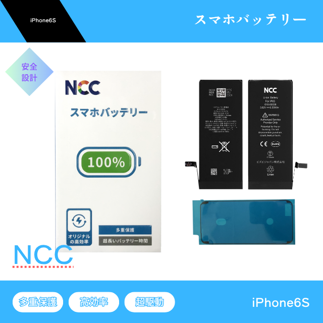iPhone6S バッテリー NCC Prime 交換 純正同等 バッテリー 防水シート バッテリーステッカー PSE取得