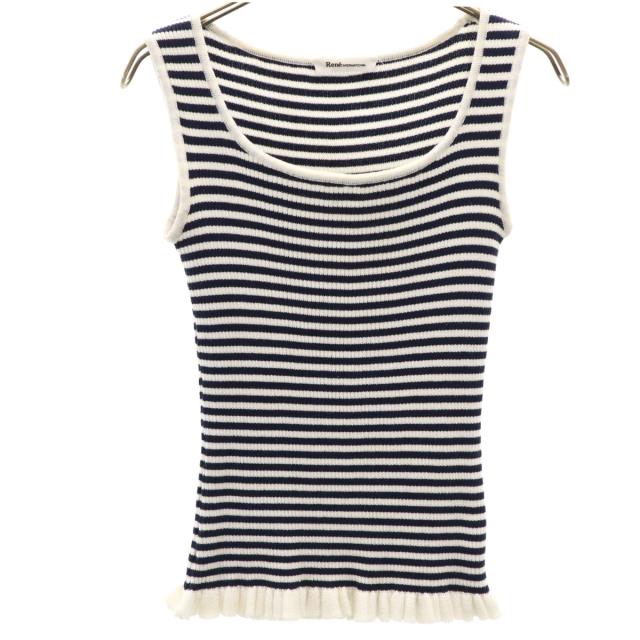 Rene ルネ 日本製 ボーダー柄 ノースリーブ リブニット タンクトップ 36 ネイビー レディース
