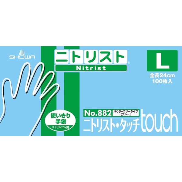 ショーワ ニトリストタッチ 使い捨てニトリル手袋 パウダーフリー Lサイズ 100枚入 ブルー NO.882 【北海道・沖縄・離島配送不可】