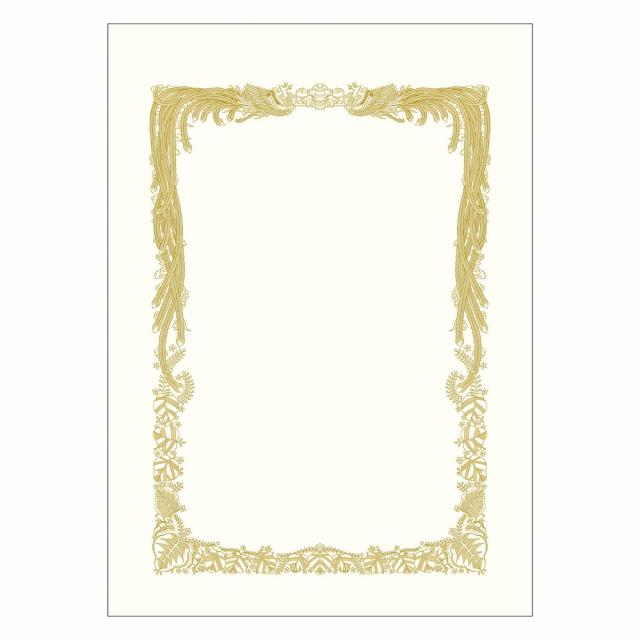・ケント紙430×308mmサイズ横書き用賞状用紙は、鳳凰の美しい輝きを発色の良い金インク印刷で表現した横書き用の賞状用紙です。