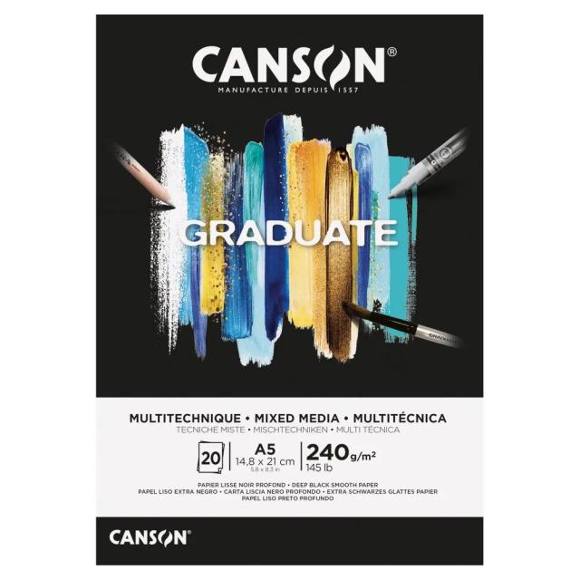 (まとめ買い)マルマン スケッチブック キャンソン グラジュエイト パッド ミックスメディア ブラック A5 20枚 C31250P019 〔3冊セット〕 【北海道・沖縄・離島配送不可】
