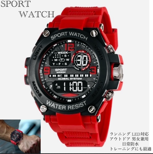 スポーツ腕時計 腕時計 時計 ライト ミリタリー デジタル アナログ LEDライト サバイバル サバゲー キャンプ 旅行 LED アウトドア 腕時計 日常 防水機能 耐久性 スポーツ ダイビング アウトドア ランニング 日付 曜日 シリコーン ゴム スポーツ腕時計 デジタル時計 ウォッチ アラーム ストップウォッチ 軽量 HUBLOT ウブロ 時計 キャンプ用品 キャンプ LEDライト 防水 ミリタリー デジタル アナログ LED 腕時計 耐久性 スポーツ 釣り マリンスポーツ ゴルフ 自転車 アウトドア ランニング 日付 曜日 シリコン ゴム レッド 防水