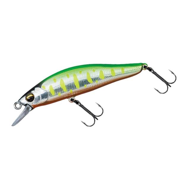 中流、本流や上流域の大淵など一段深い流れに潜む鱒をマッチザベイトのサイズとトゥイッチ時の小気味よいヒラ打ちハイアピールアクションで攻略。アップクロスでのヒラ打ちとダウンクロスでは浮き上がりにくく、一段深い流れをしっかりとトレースしつつも引き重りを軽減。後方重心とすることでフォール時にフックへ糸絡みもしにくく、扱いやすさも追求。ボディ側面の高級感のあるアルミ貼りフィニッシュは鱒に違和感を与えない柔らかな光の反射を実現した。信頼のMADE IN JAPAN。