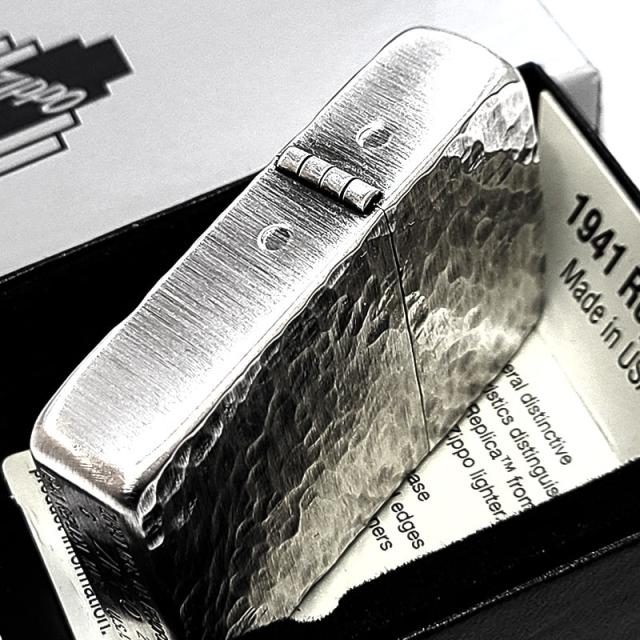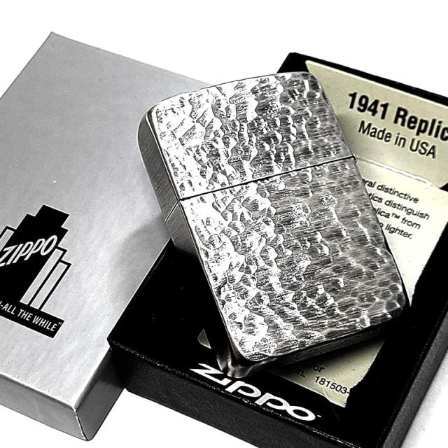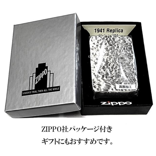 ZIPPO ライター 1941 復刻 レプリカ ハンマートーン 銀古美 ジッポ かっこいい 両面加工 アンティークシルバー 燻し加工 スタンダード 丸角 おしゃれ メンズ ギフト プレゼント 動画あり