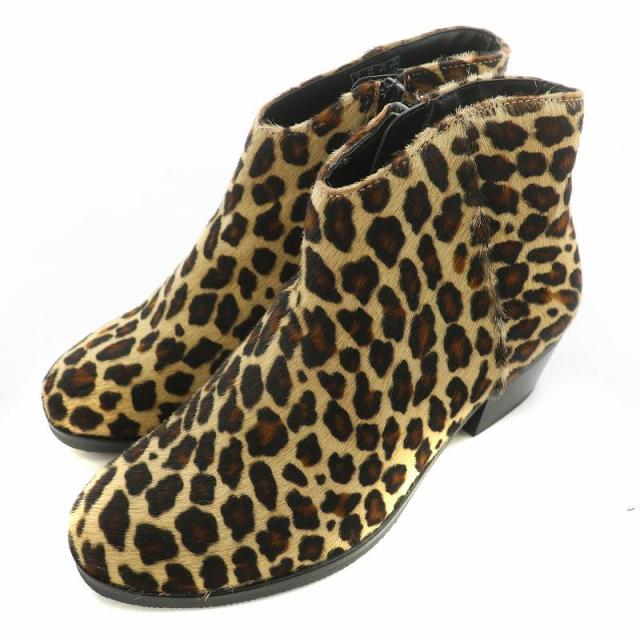 【中古】未使用品 クラークス ミラミス ショートブーツ ハラコレザー レオパード柄 22cm ベージュ 茶
