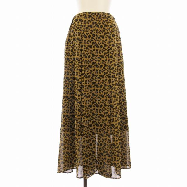 【中古】オードリーアンドジョンワッド フレアスカート ロング レオパード ヒョウ柄 M 茶 ブラウン H1604R2 /EE