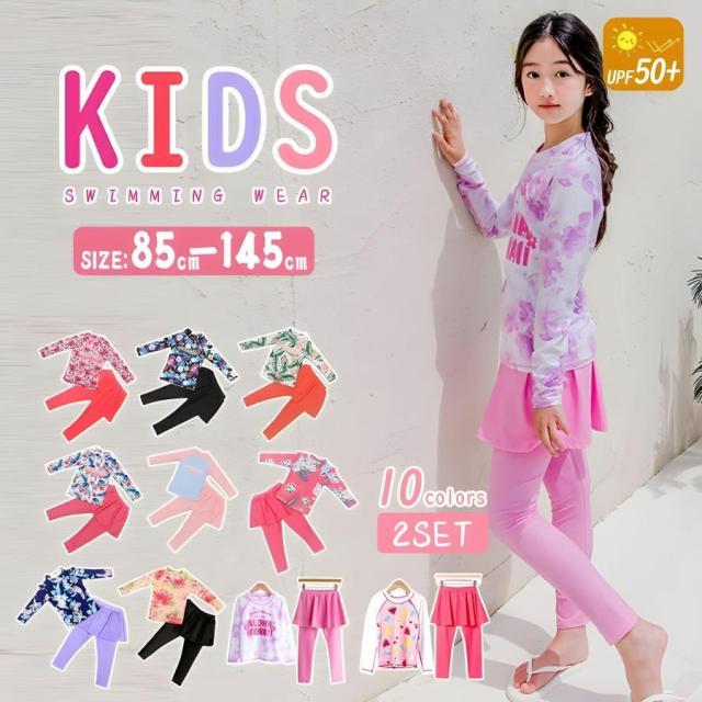 水着 キッズ水着 女の子 ラッシュガード セパレート 上下2点セット 長袖 レギンス スカッツ トランクス スクール 子供用 スイムスーツ キッズ ジュニア 上下別柄