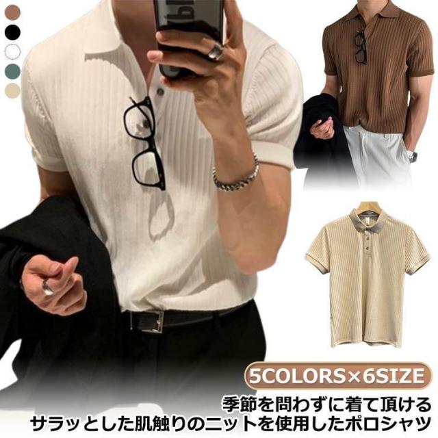 ポロ ニット トップス 半袖 ポロシャツ サマーニット ポロシャツ リブニット メンズ 薄手 春 キレイめ スリム 細身 ビジネス 夏服 ゴ