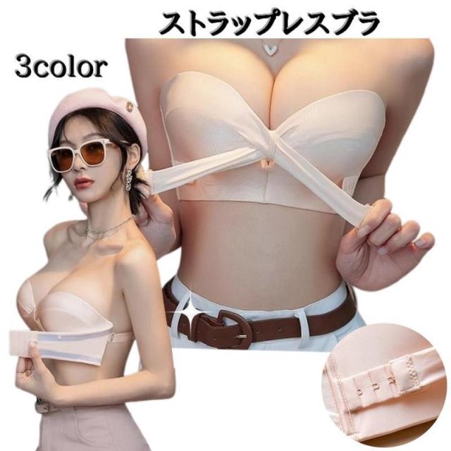 ストラップレスブラ レディース 女性 インナー 下着 ブラジャー フロントホック 調節 滑り止め シンプル 無地 フロントクロス オフショル ドレス