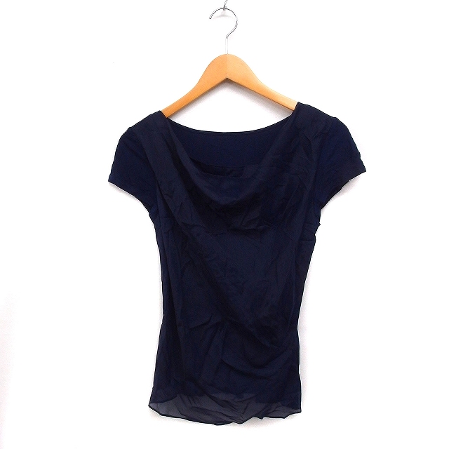 【中古】クードシャンス CdeC COUP DE CHANCE ドレープ カットソー Tシャツ キャップスリーブ 素材切替 34 ネイビー