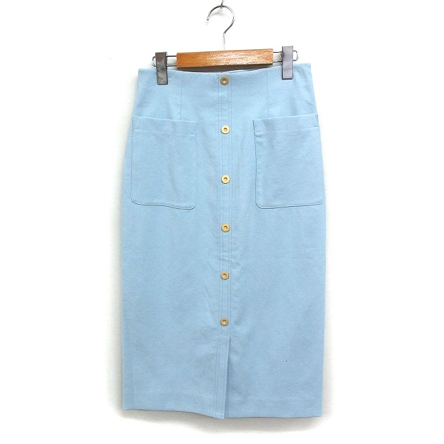 【中古】ノーリーズ Nolley's タイトスカート ミディ丈 フロントボタン スリット 無地 麻混 36 ライトブルー /FT27