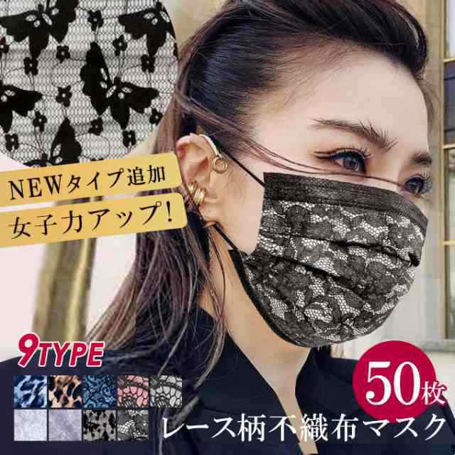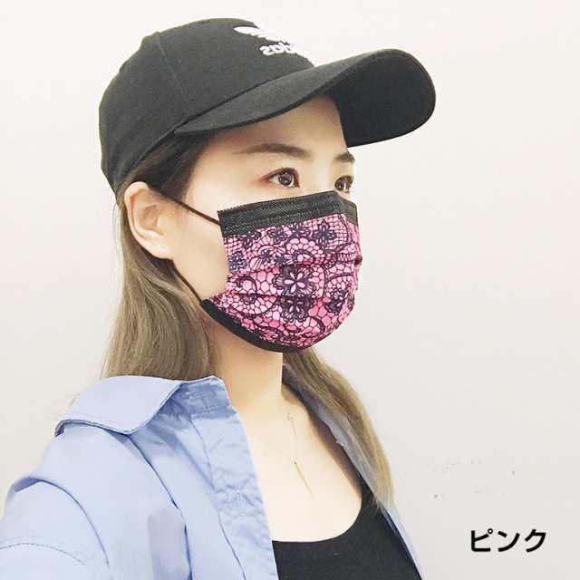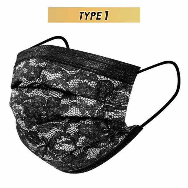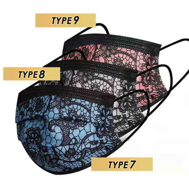 レース柄不織布マスク50枚入り 使い捨て レース 不織布マスク 3層構造 立体 防塵 飛沫防止 成人 おしゃれ イベント 通勤