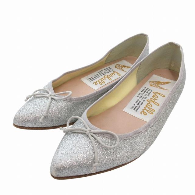 【中古】ファルファーレ farfalle バレエシューズ フラット リボンモチーフ グリッター ラメ 37 シルバーカラー
