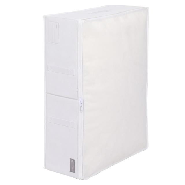 【特長】 ●通気性の良い不織布製の寝具用収納ケース。オフシーズンの布団をほこりから守り保管。 ●収納スペースに合わせてさまざまな組み合わせで使用でき、白色でスッキリとまとまる。 ●側面に厚紙入りでしっかりしているので縦置きも可能。タオルケットなどの収納にも。 ●両サイドと前面に持ち手付きで、ケースの持ち運びや収納場所からの出し入れが簡単。 ●ネームホルダー付きで中身をメモしておけるので、開けて探す手間が省けて管理しやすい。 ●ダブルジップファスナーでコの字に3辺が開くので、布団の出し入れがスム ーズ。 ●使わないときは折りたためてコンパクトかつスリムになるので、場所を取らず保管できる。