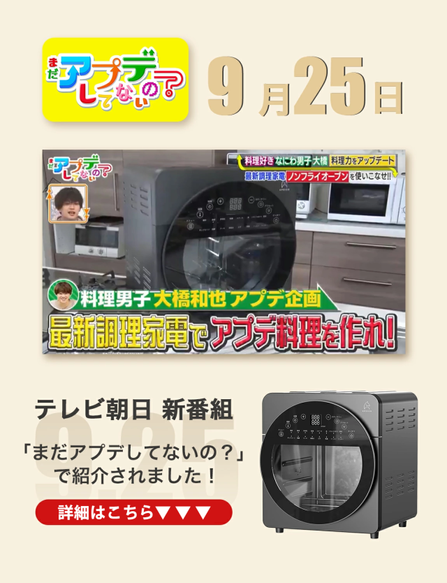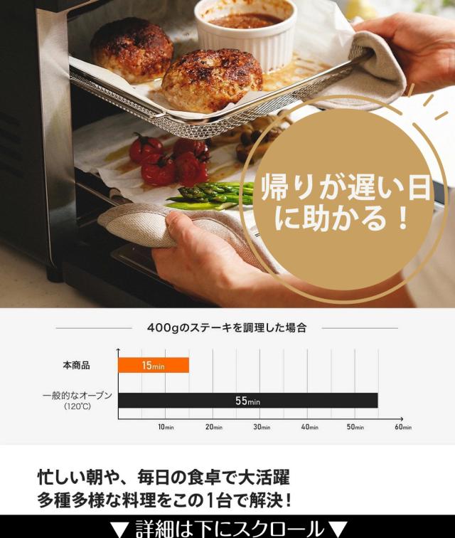 熱風でムラなく加熱し油不要!カロリーカットで美味しくヘルシー調理。操作簡単で初心者にも◎