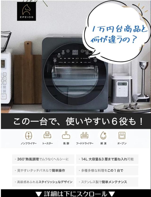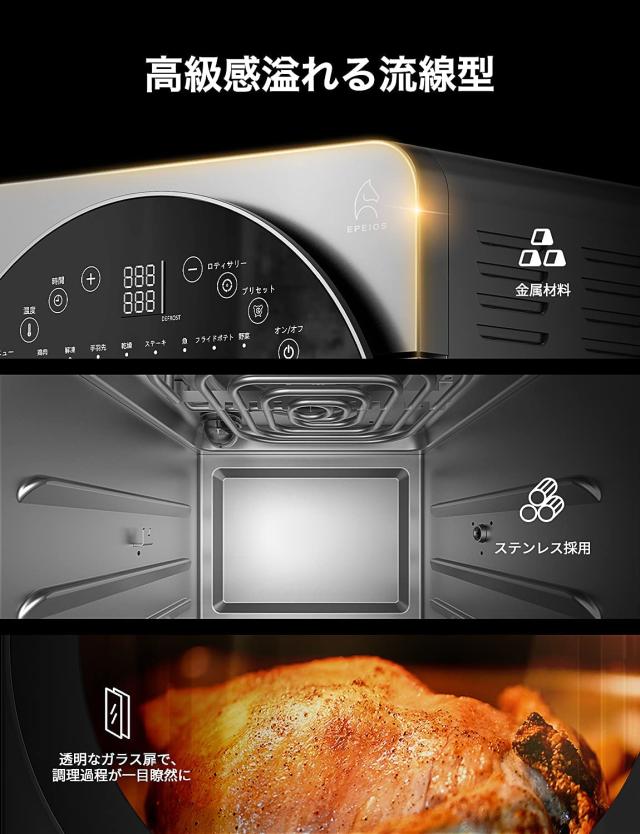 【複数人気番組にて紹介】 1台6役 Epeios ノンフライオーブン ノンフライヤー 14L 3段 大容量 家庭用 トースター オーブン 発酵 低カロリー 油なし 360°熱風循環 時短 同時調理 ロティサリー 回転式 お手入れ簡単 家電 CP247