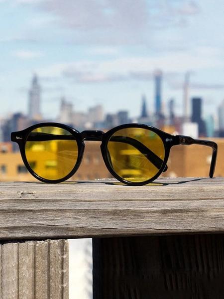男性と女性のためのレトロなスタイルのサングラス,小さな丸いフレーム,黄色のレンズ,UV400