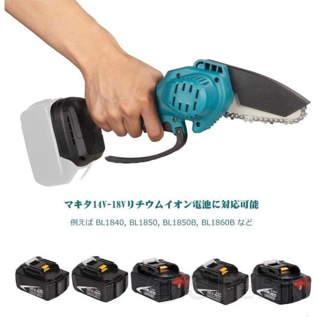 充電式チェーンソー 小型チェンソー マキタ18Vバッテリー互換対応 電動チェーンソー コードレス 片手 軽量 木工切断 枝切り ポータブル【本体のみ】