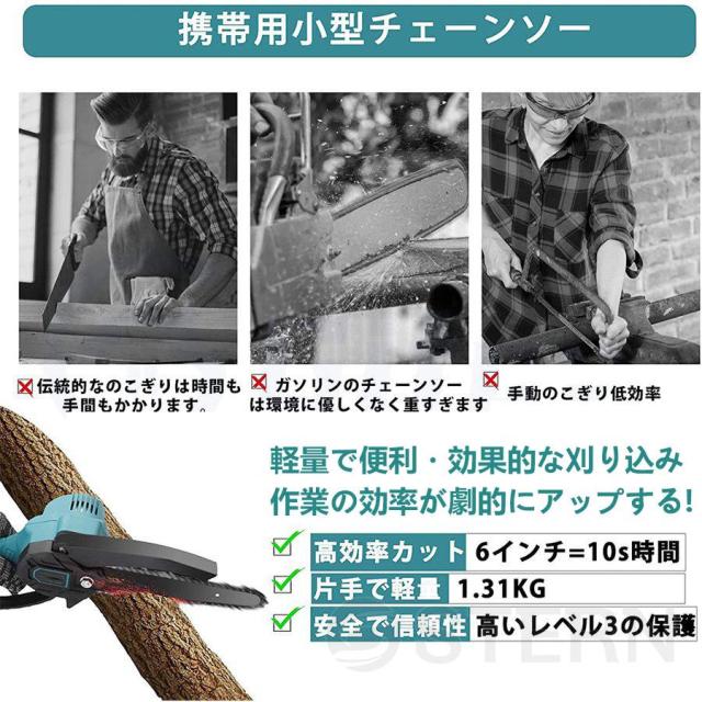 【用途】小型チェーンソーは小型で持ち運びが簡単で、電源コードや電源がない場所でも使用できます。女性でも簡単に操作?使用でき、長時間働いても疲れません